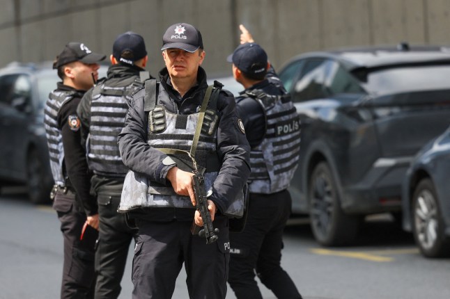 Start your day informed with Metro's News Updates newsletter or get Breaking News alerts the moment it happens.Footage shows police officers pulling out guns and taking cover as shots were fired for at least 10 minutes.One person is seen lying on the ground,unmoving and covered in blood,after gunfire,while armed officers run behind a bus.A chilling video appears to show a man holding a large rifle-style weapon while taking cover behind a van.Turkish interior minister,Mustafa Ciftci,said: ‘Three individuals who engaged in an armed clash with our police officers on duty in front of the Yapı Kredi Plaza Blocks in Istanbul have been neutralised.‘In the clash,two of our heroic police officers sustained minor injuries.’